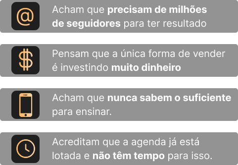 Para profissionais como terapeutas, advogados, médicos, coaches, psicólogos e outros especialistas que atendem no 1:1, mas querem começar a escalar seus ganhos com produtos digitais.